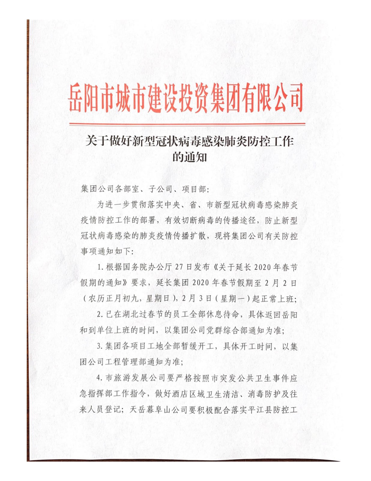 關(guān)于做好新型冠狀病毒感染肺炎防控工作的通知